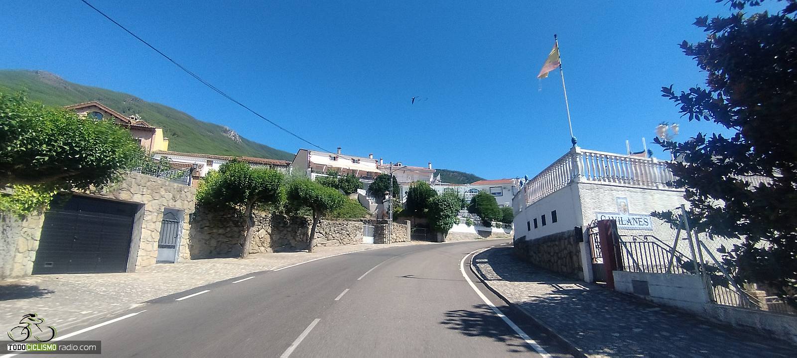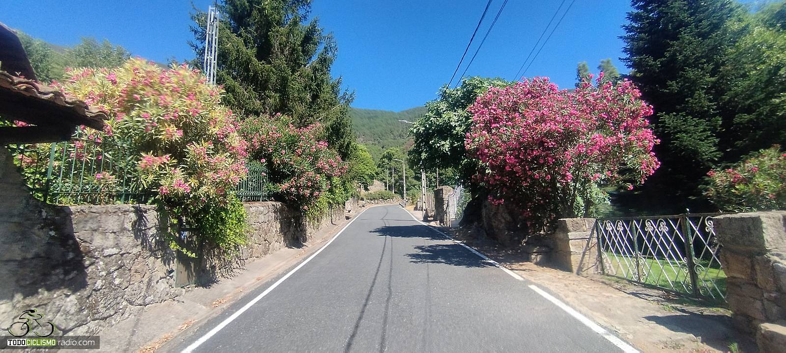 La subida atraviesa Gavilanes, donde la carretera se empina y vemos algún 10% puntual. El paso por el pueblo tiene su encanto, con pavimento algo más irregular y las campanas sonando de fondo, pero es breve. En esta zona encontramos varias fuentes, tanto en el núcleo urbano como a la salida, así que, aunque conviene llevar los bidones llenos desde abajo, contamos con opciones para repostar agua durante el ascenso.