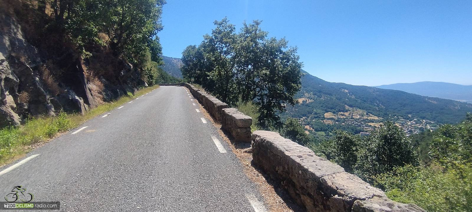 Los primeros kilómetros discurren entre zonas arboladas, donde agradecemos las sombras, sobre todo en jornadas calurosas. El asfalto se encuentra en buen estado y el tráfico es muy reducido, lo que refuerza esa sensación de calma que tanto buscamos cuando nos adentramos en la montaña. A medida que avanzamos vamos ganando altura sin grandes sobresaltos, con pequeñas bajadas que rompen el ritmo pero que pronto nos obligan a volver a quitar platos y subir coronas.