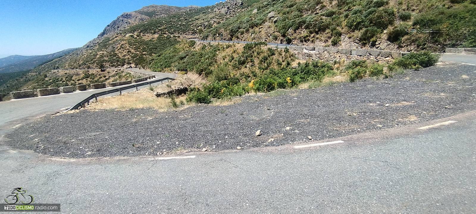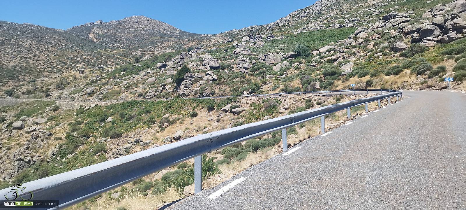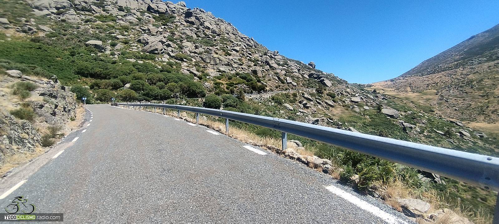 En los últimos kilómetros la altitud aumenta y las vistas se abren todavía más: Gredos se muestra en todo su esplendor, con el valle al fondo y, en días claros, una amplitud de horizonte que convierte la parte final del puerto en un auténtico premio. A nuestra izquierda se despliega el paisaje, mientras que a la derecha seguimos viendo el trazado que hemos ido conquistando curva a curva. Es uno de esos finales que invitan a aflojar un punto, levantar la vista y grabar bien en la memoria el entorno por el que estamos pedaleando.
