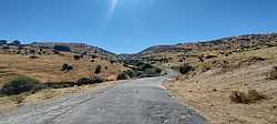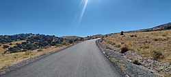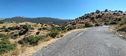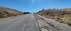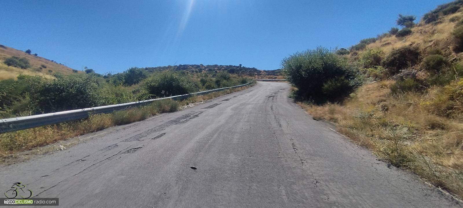 La carretera mantiene un trazado bastante rectilíneo, con pocas curvas de herradura, lo que hace que la sensación visual de dureza sea aún más acusada: se ve perfectamente cómo la carretera va ganando altura sin apenas descanso. En varios puntos el porcentaje vuelve a situarse por encima del 12–14 %, con señales que reflejan claramente la entidad del puerto. El tráfico, en general, es escaso, lo que contribuye a disfrutar más de la subida, aunque conviene estar atento por los cambios constantes de firme y algún bache puntual.