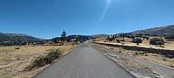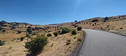Una vez coronado, el paisaje se abre a un altiplano que contrasta con la estrechez de la vertiente de subida. La sensación de haber vencido un muro es evidente, especialmente tras ese último medio kilómetro tan contundente. Al otro lado se observan algunos elementos singulares del entorno, como una serie de estructuras similares a dólmenes modernos, que ponen un punto curioso al tramo de falso llano tras el final del puerto y aportan un toque distintivo al lugar.