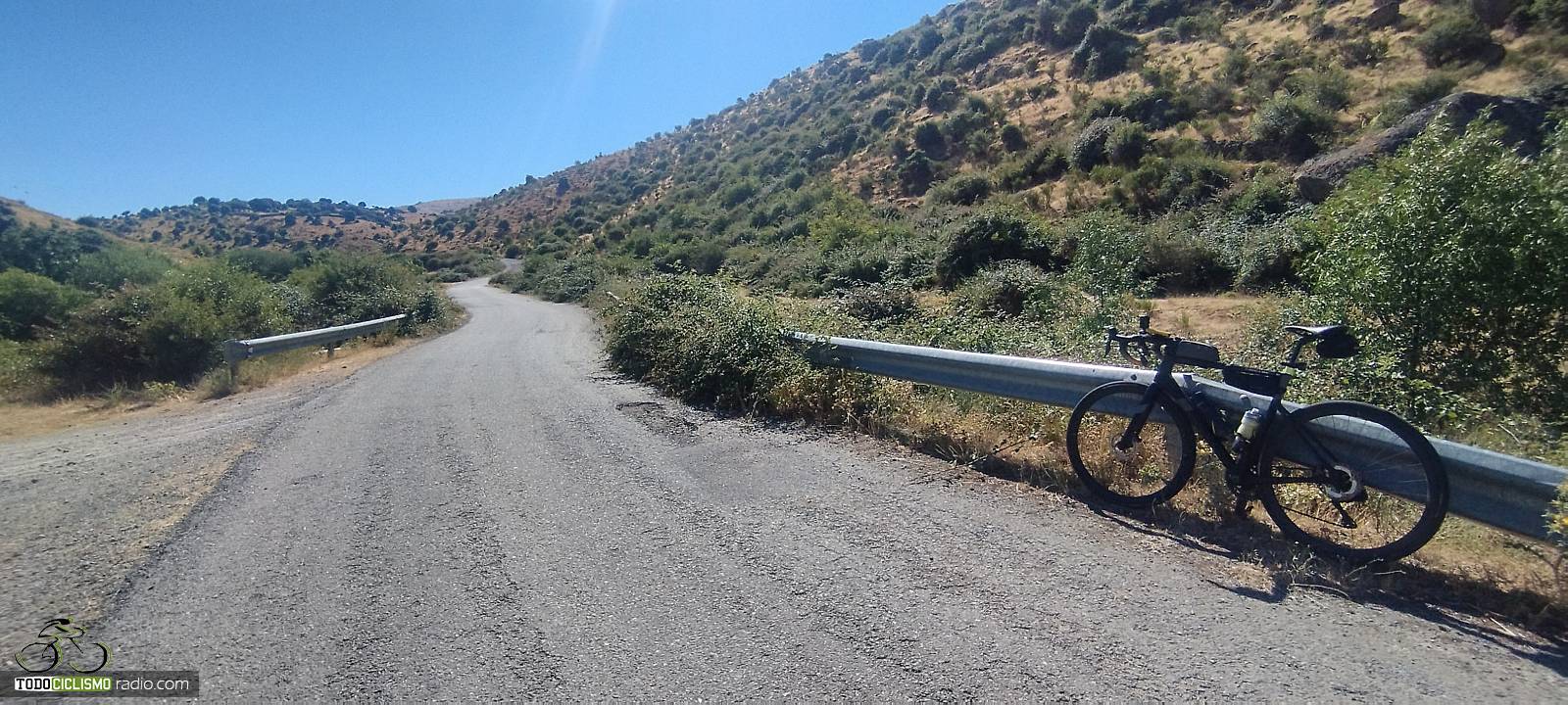 Nos encontramos en la provincia de Ávila, muy cerca de la localidad de El Herradón, donde arranca una de las ascensiones más exigentes de la zona: el puerto del Mediano. La subida comienza en un puente sobre el río Gaznata y desde prácticamente el primer metro deja claro su carácter, con una media que ronda el 9,5 % y un trazado que apenas concede respiros. Es un puerto corto pero muy intenso, ideal para quienes buscan puertos con alta exigencia en porcentaje.