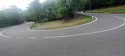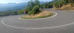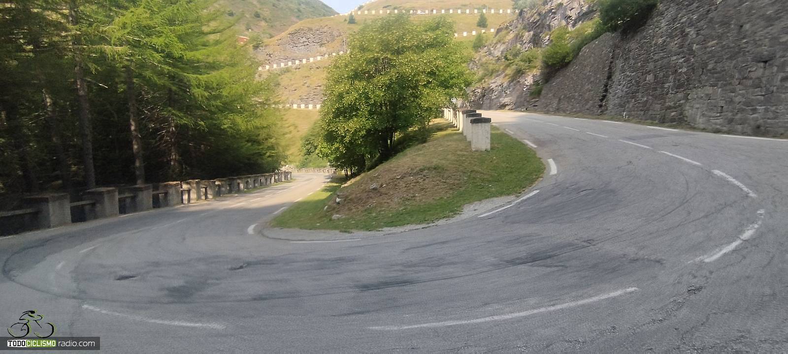 Curva de Herradura entre Bosques en Mont Cenis, SusaVaya cómo sube la carretera en el Mont Cenis, Italia