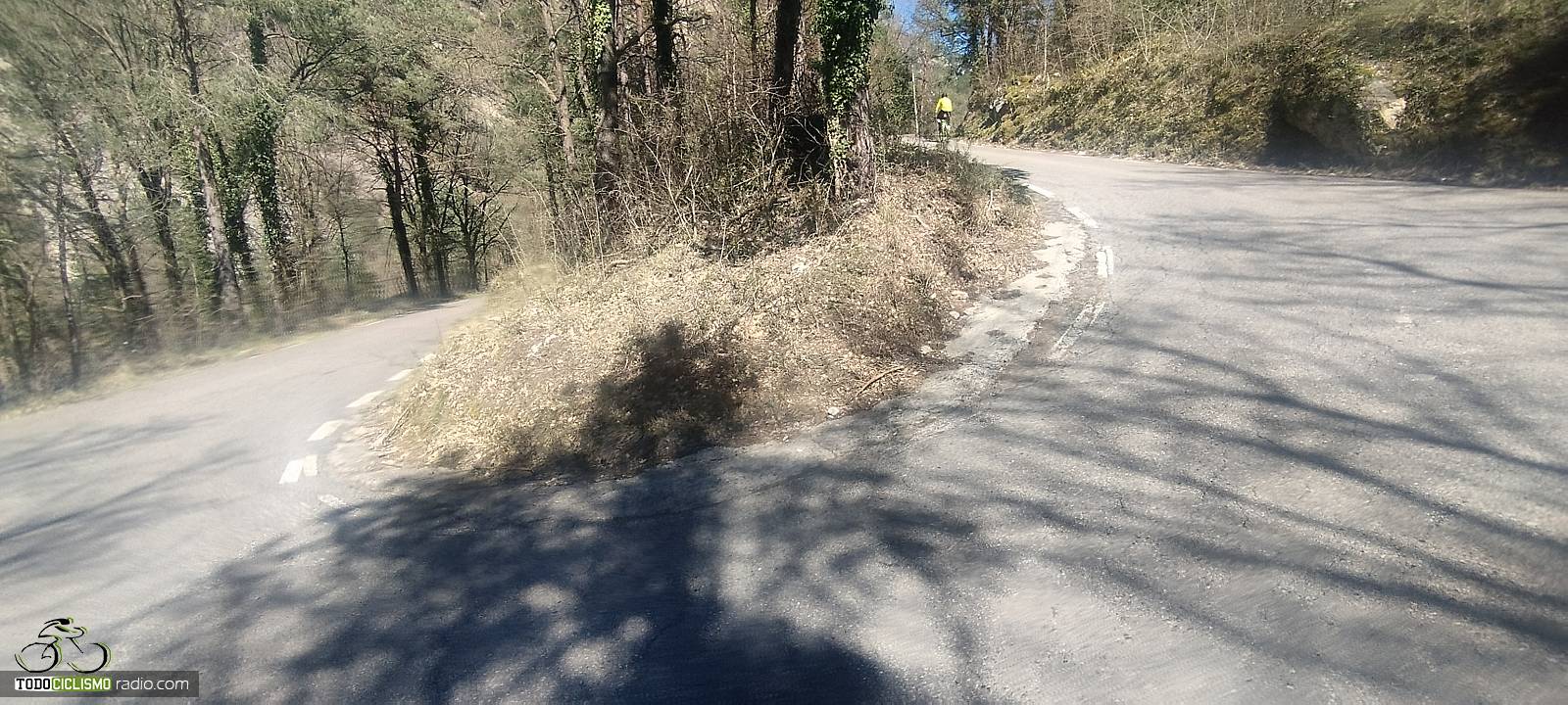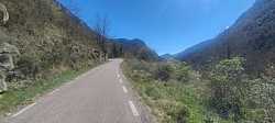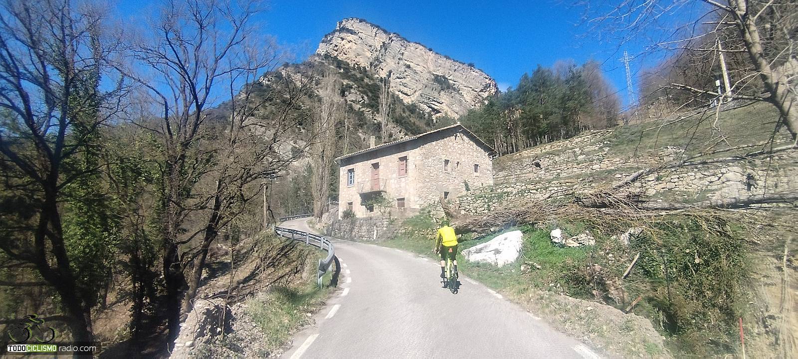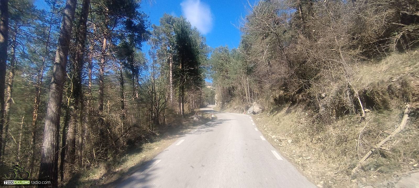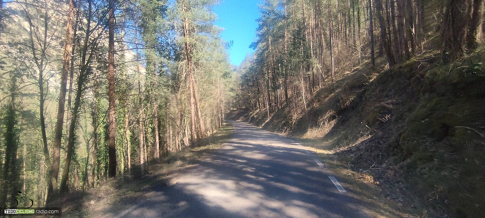 Pedaleo pegado a la roca camino de Sant Isidre, la pared encima impone lo suyoEsta herradura entre pinos de Sant Isidre me recuerda que el 8,6% no perdona