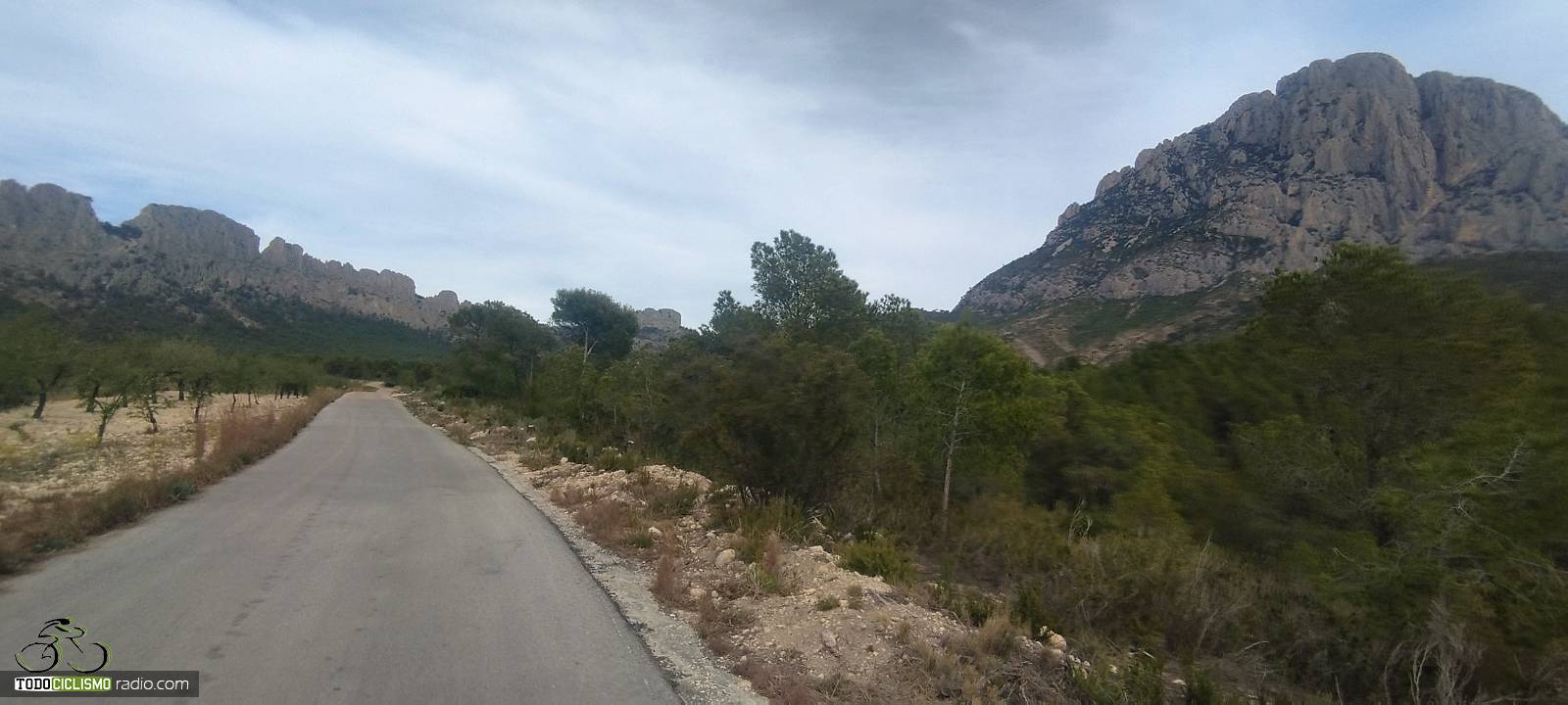 Las vistas durante la subida son espectaculares, con un paisaje montañoso que, en días despejados, permite disfrutar de un entorno de gran belleza natural. La montaña de Puig Campana domina el horizonte y es una referencia constante para el ciclista durante toda la ruta. Es una experiencia que invita a desconectar y sumergirse completamente en el entorno.