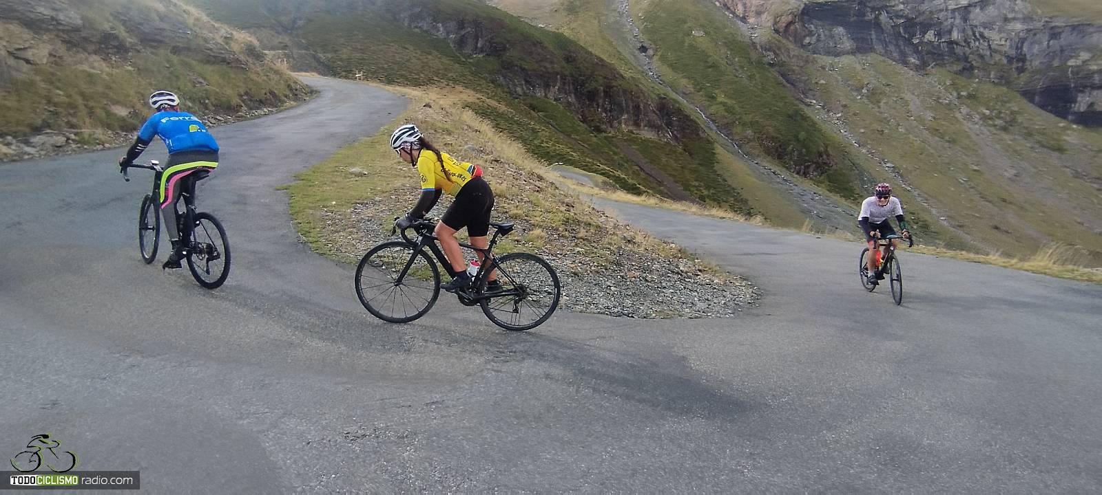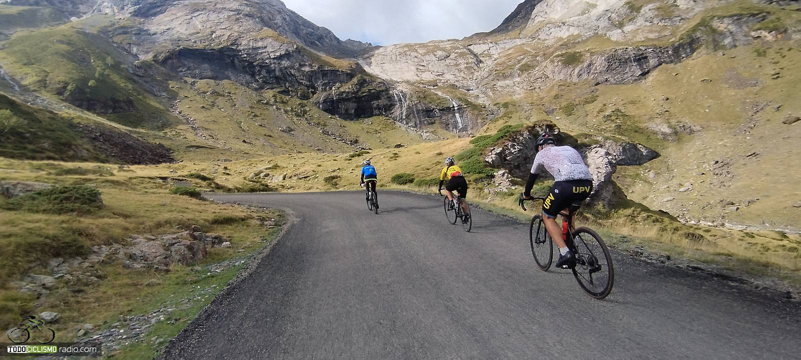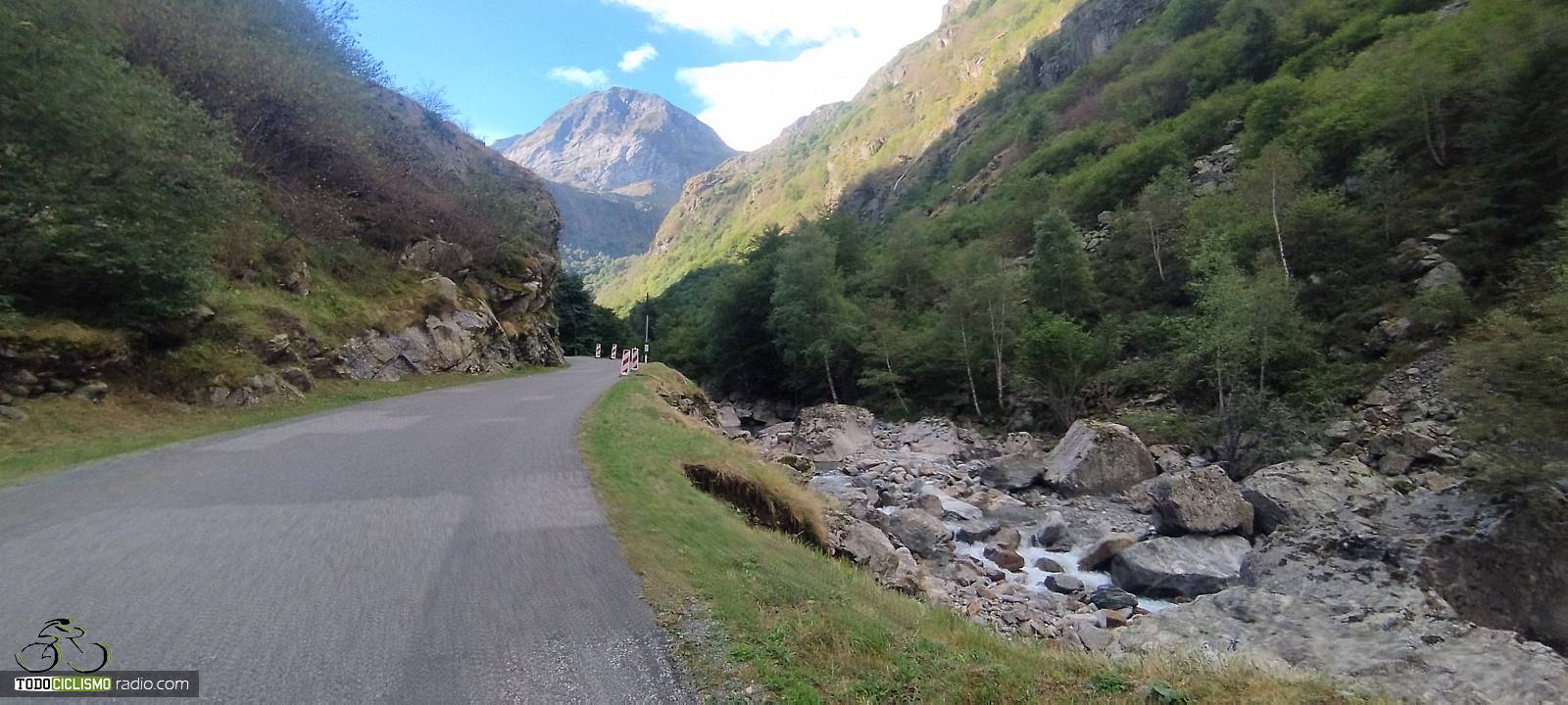 Entre paredes verdes camino de Troumouse, calentando piernas en los primeros kilómetrosEl río nos acompaña mientras voy encajonado camino de TroumouseTirando de grupo hacia arriba, que el Troumouse hasta los 2088 m se hace largoEstas herraduras de Troumouse se agarran bien a las piernas, pero el paisaje lo compensaParada obligatoria con la bici ante el circo de Troumouse, premio a la subida