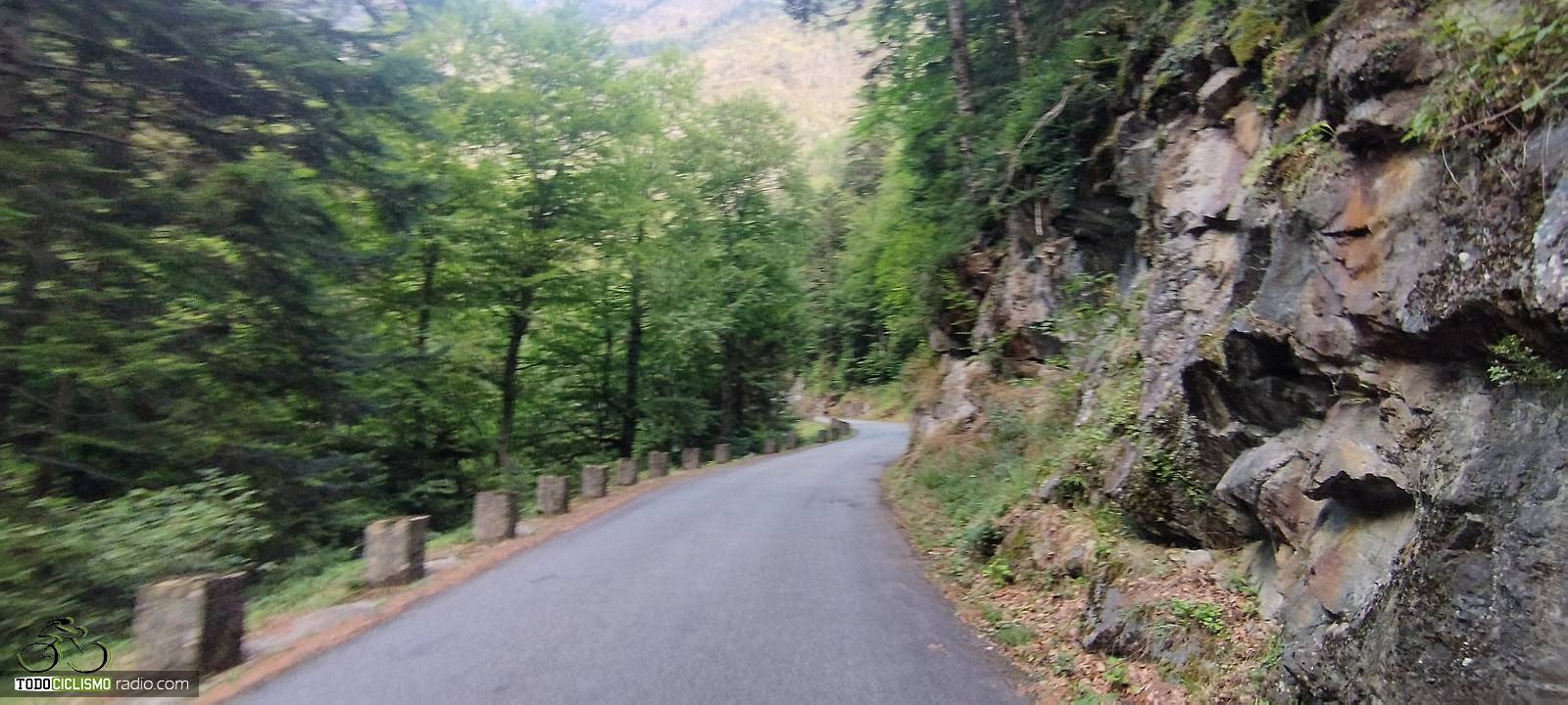 Carretera Arbolada y Rocosa en la Ascensión al Cap de Long, bonito inicioBonito encadenado de curvas en Cap de LongCarretera curvada entre bosques y paredones en el puerto de Cap de LongCurvas de Herradura en el Ascenso a Cap de Long, FranciaJunto al Embalse en Cap de Long, FranciaA la cesta el Puerto de Montaña Cap de Long, y con Vista al Lago